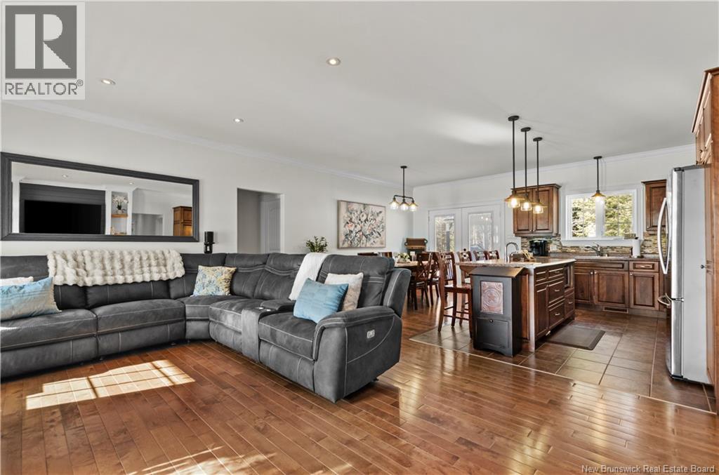 Welcome home to this pristine 3-bedroom, 2.5-bath open-concept bungalow set on a beautifully manicured 1+ acre lot offering peace, privacy, and direct access to ATV and snowmobile trails. The bright main living area showcases hardwood flooring, ceramic tile in the kitchen, crown moulding, a stunning custom wall unit with built-in electric fireplace, and many freshly painted rooms throughout. The kitchen features dark wood cabinetry with underlighting, an XL centre island with additional storage, and a breakfast bar. The spacious dining area easily accommodates a large table and opens through patio doors to the back deck, gazebo, and sun-filled yard - perfect for enjoying afternoon sun by the heated 24-ft above-ground pool (48-inch depth, installed 2020) with Hayward heater and chlorine system. The primary suite offers a walk-in closet and 4-piece ensuite, while two additional bedrooms, a full bath, half bath with laundry, and access to the double car garage complete the main level. The lower level includes an oversized family room with room to grow. Ducted heat pump provides efficient heating and central A/C throughout. Appliances included. Septic system features monitoring and alarm. 14x16 shed, gorgeous perennial beds, abundant wildlife, walking trails and Dunbar Falls nearby, plus exceptional neighbours and shared snow removal agreement. Peaceful, serene, pre-inspected and truly move-in ready. Private Lane. (id:4069)